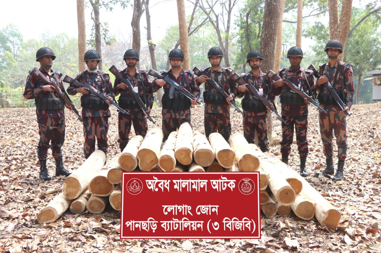 পানছড়িতে বিজিবি’র অভিযানে অবৈধ সেগুন কাঠ জব্দ