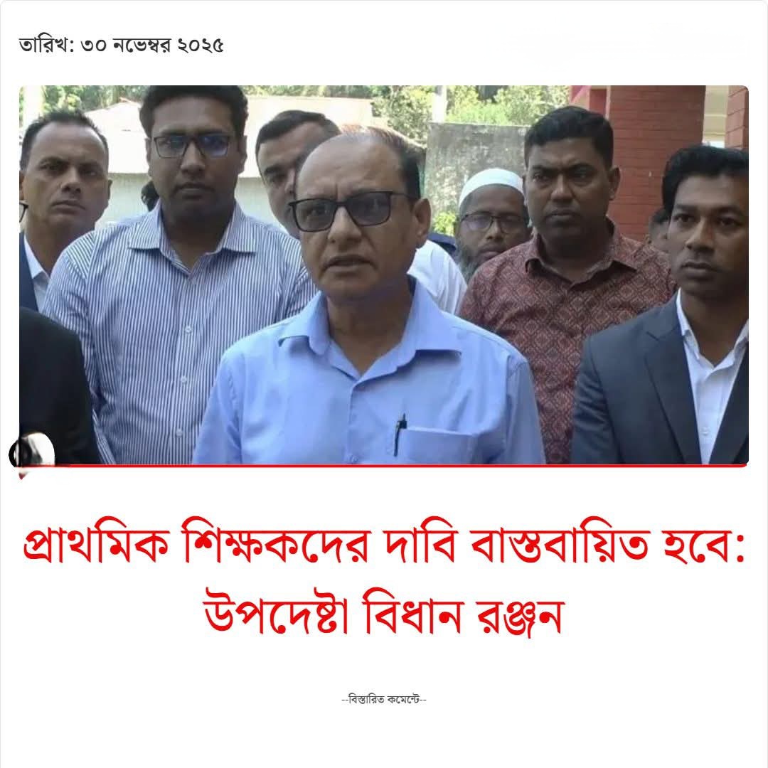 প্রাথমিক শিক্ষকদের দাবি বাস্তবায়িত হবে: উপদেষ্টা বিধান রঞ্জন