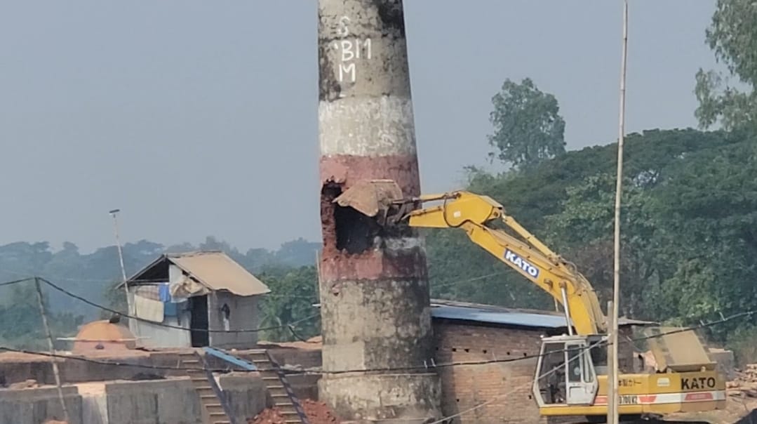 মোট ৯টি ইটভাটার চিমনি ভেঙে গুড়িয়ে দেওয়া হয়।
