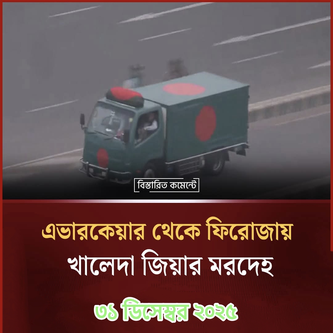 নিজস্ব প্রতিবেদক।। সাবেক প্রধানমন্ত্রী ও বিএনপি চেয়ারপারসন খালেদা জিয়ার মরদেহ এভারকেয়ার হাসপাতাল থেকে গুলশানের বাসভবন ফিরোজায় নেওয়া হয়েছে। বুধবার (৩১ ডিসেম্বর) সকাল ৯টা ১৬ মিনিটে তার মরদেহ গুলশান-২ এর নর্থ অ্যাভিনিউয়ে অবস্থিত নিজ বাসভবন-১৯৬, গুলশান নর্থ অ্যাভিনিউয়ে প্রবেশ করে।
