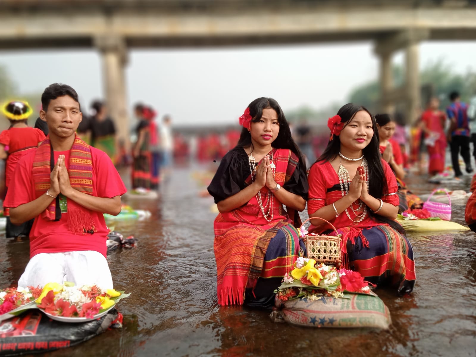ফুল বিঝুতে মেতে উঠেছে খাগড়াছড়ি, নদীতে ফুল ভাসিয়ে মঙ্গল কামনা
