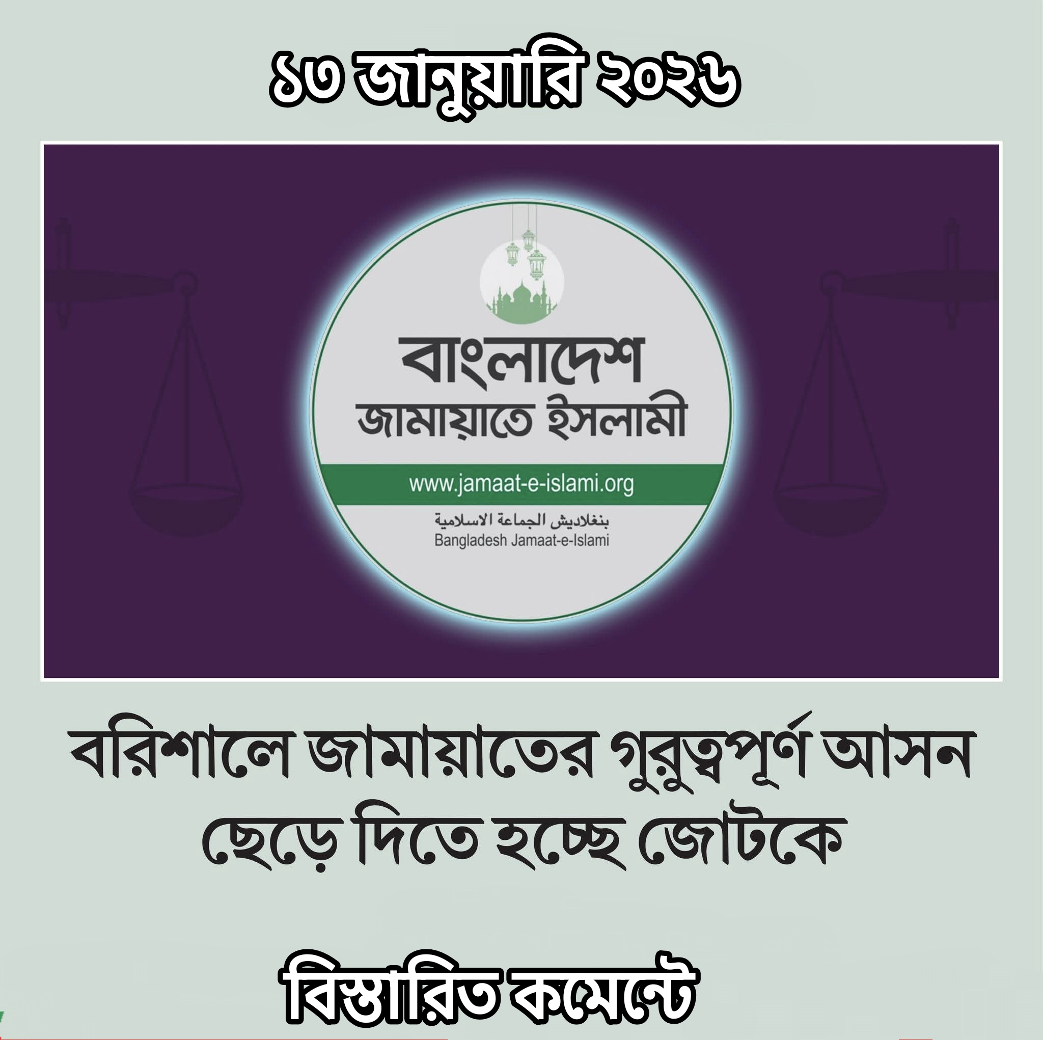 বরিশালে জামায়াতের গুরুত্বপূর্ণ আসন ছেড়ে দিতে হচ্ছে জোটকে