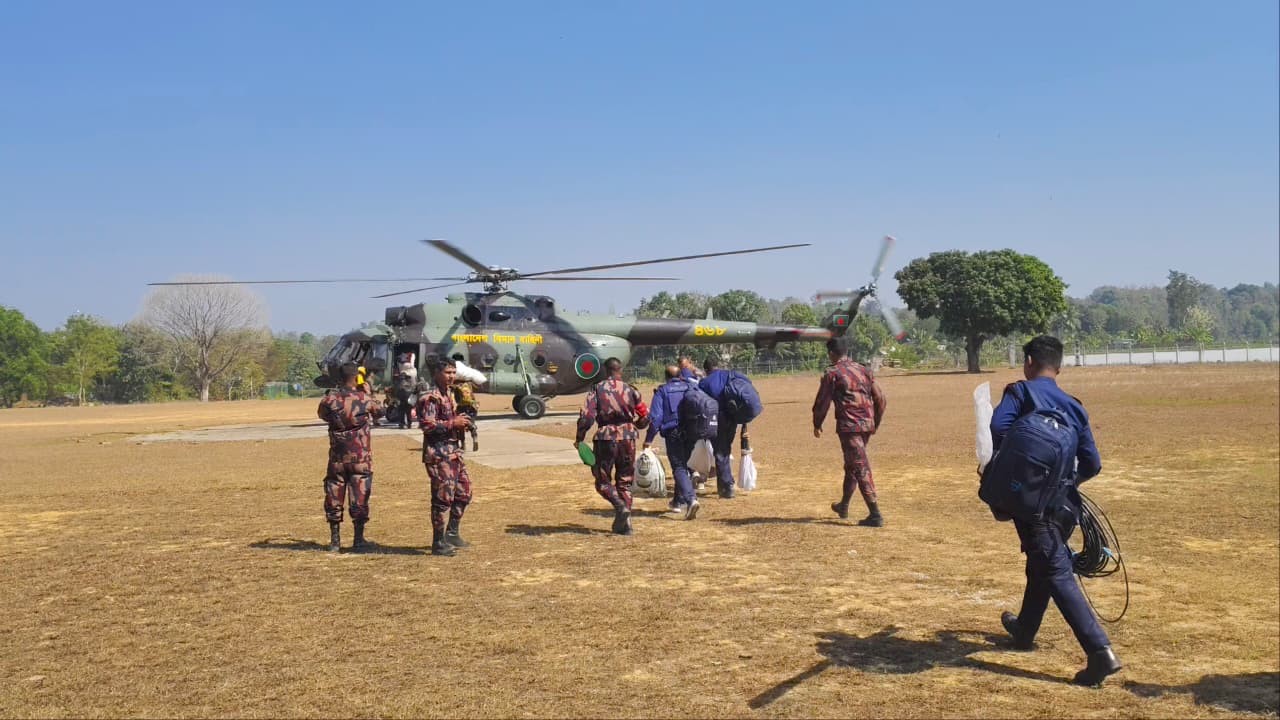 বাঘাইছড়িতে ছয় কেন্দ্রে হেলিকপ্টারে পৌঁছালো নির্বাচনী সরঞ্জাম