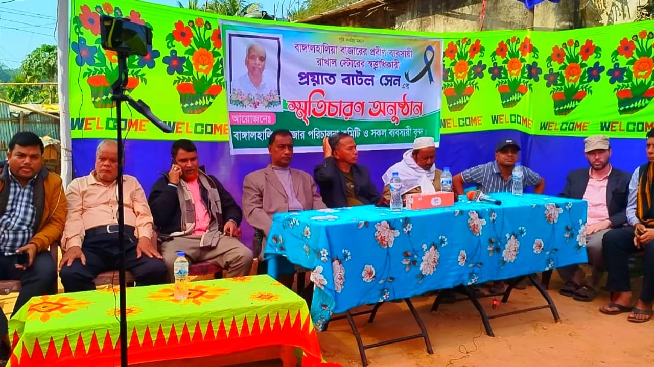 রাঙ্গামাটি জেলার রাজস্থলী উপজেলার তিন নম্বর বাঙ্গালহালিয়া ইউনিয়নের রাঙ্গামাটি পার্বত্য জেলার দ্বিতীয় প্রাণকেন্দ্র বাঙ্গালহালিয়া বাজারের প্রবীণ ব্যবসায়ী রাখাল স্টোরের স্বত্বাধিকারী প্রয়াত বাটল সেনের মৃত্যুতে বাঙ্গালহালিয়া বাজার পরিচালনা কমিটি ও সকল ব্যবসায়ীবৃন্দের উদ্যোগে ৩১ ডিসেম্বর, বুধবার বাজার চত্বরে স্মৃতিচারণ অনুষ্ঠানের আয়োজন করা হয়েছে।
