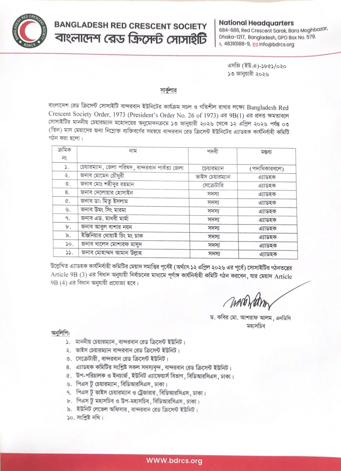 বান্দরবান রেড ক্রিসেন্ট ইউনিটের তিন মাসের অ্যাডহক কমিটি গঠন