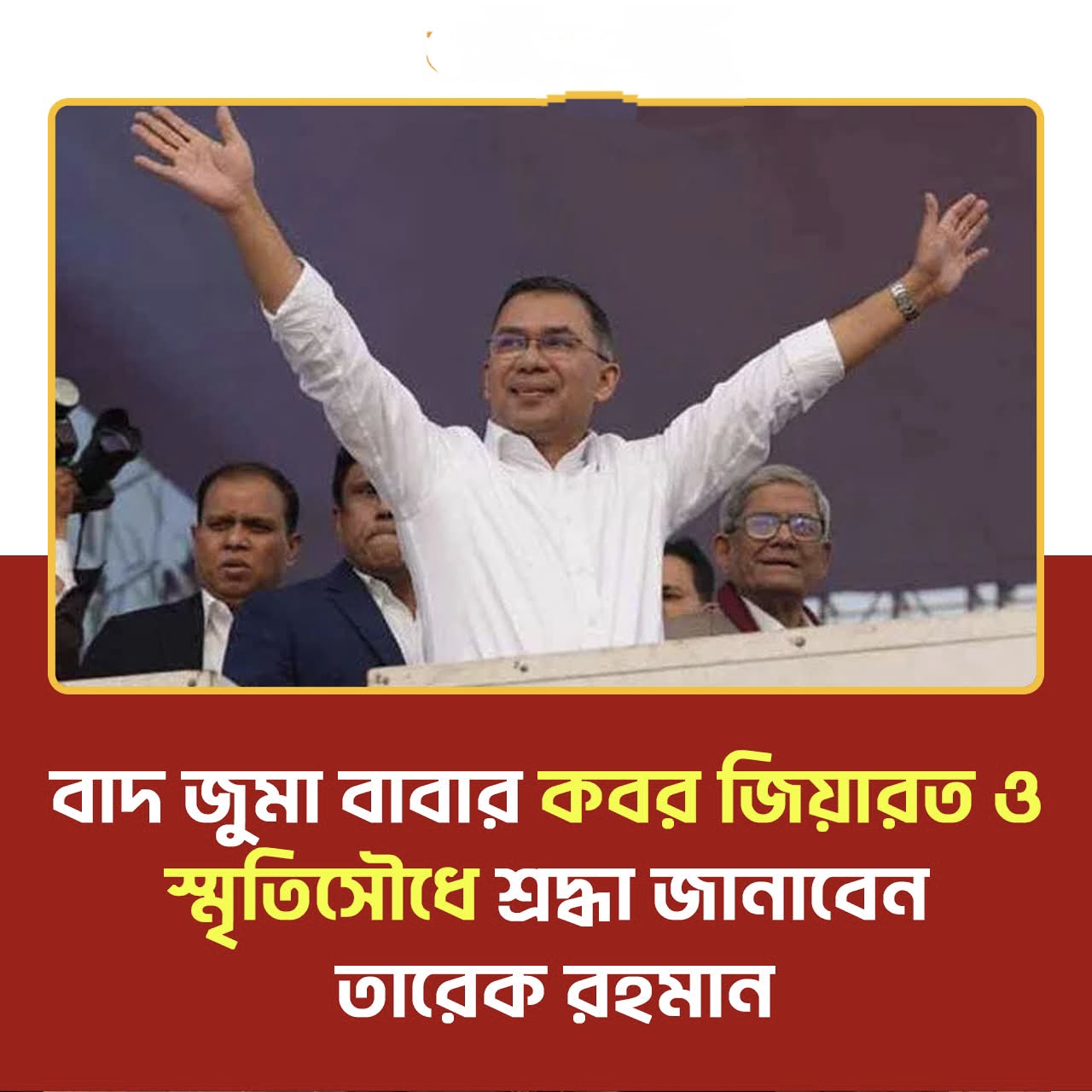 বাবার কবর জিয়ারত ও স্মৃতিসৌধে শ্রদ্ধা জানাবেন তারেক রহমান, মসজিদে হবে দোয়া