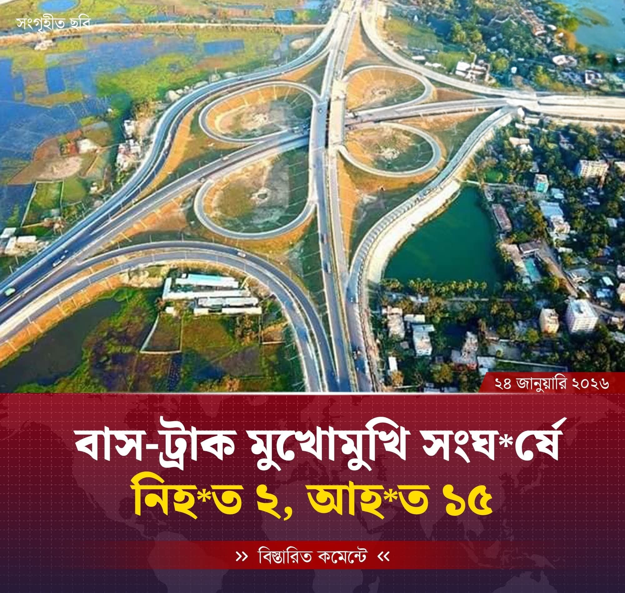 বাস-ট্রাক মুখোমুখি সংঘর্ষে দুইজন নিহত, আহত ১৫