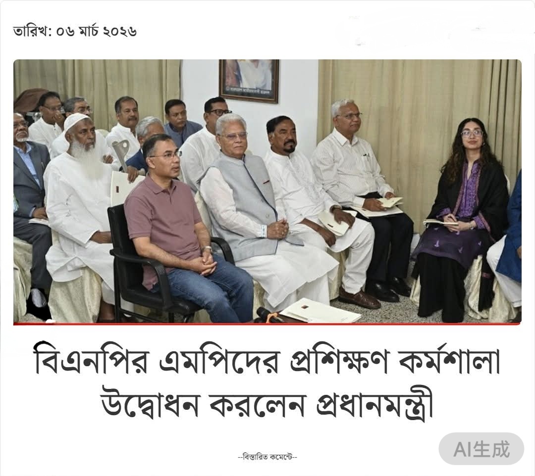 বিষয়টি নিশ্চিত করে প্রধানমন্ত্রীর অতিরিক্ত প্রেস সচিব আতিকুর রহমান রুমন বলেন, বিএনপির চেয়ারম্যান ও সংসদ নেতা প্রধানমন্ত্রী তারেক রহমান বিএনপির নির্বাচিত সংসদ সদস্যদের এক প্রশিক্ষণ কর্মশালায় আছেন।