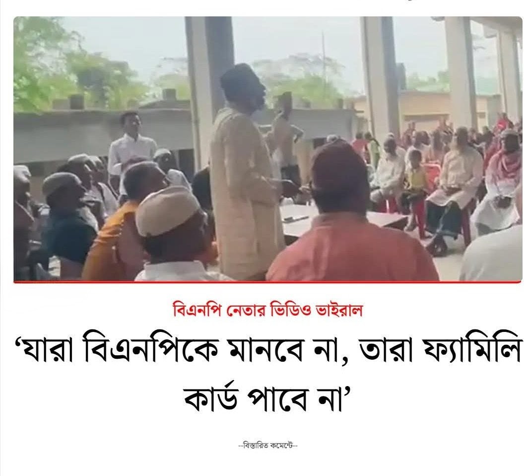 বিএনপি নেতার ভিডিও ভাইরাল: যারা বিএনপিকে মানবে না, তারা ফ্যামিলি কার্ড পাবে না