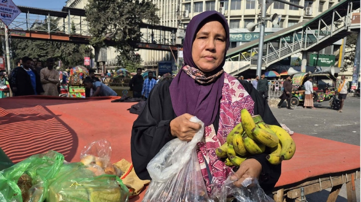 বিক্ষোভকারীদের জন্য কলা-পাউরুটি নিয়ে শাহবাগে গৃহিণী রাশিদা