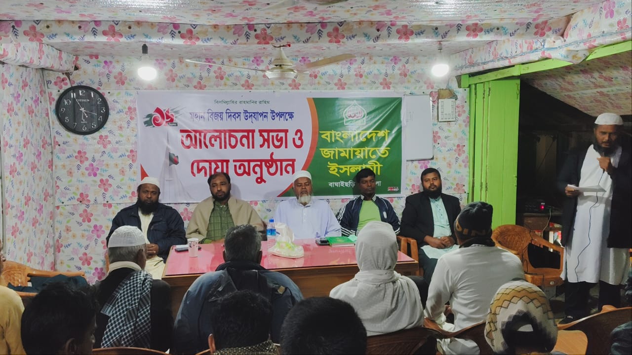 ৫৪ তম বিজয় দিবস উদযাপন উপলক্ষে আলোচনা সভা ও দোয়া অনুষ্ঠানের আয়োজন করেছে, বাংলাদেশ জামায়াতে ইসলামী, বাঘাইছড়ি উপজেলা।