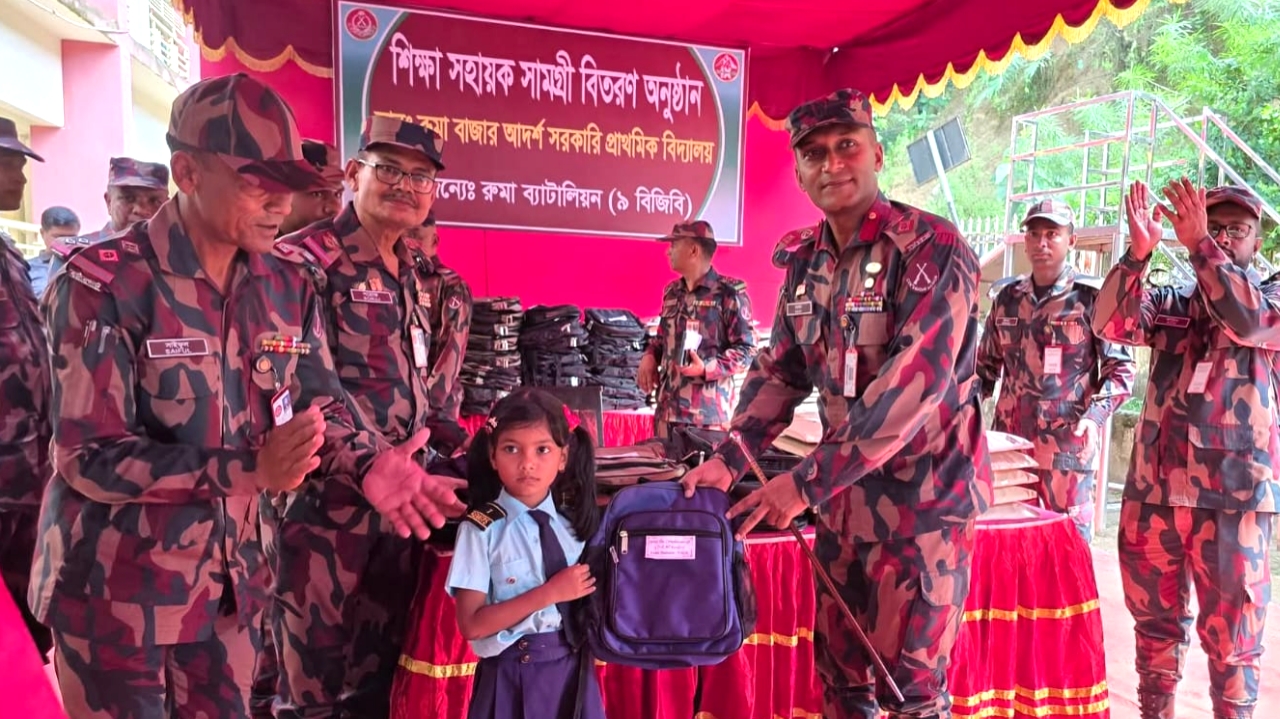 বিজিবির উদ্যোগে রুমায় শিক্ষার্থীদের মাঝে শিক্ষা সামগ্রী বিতরণ