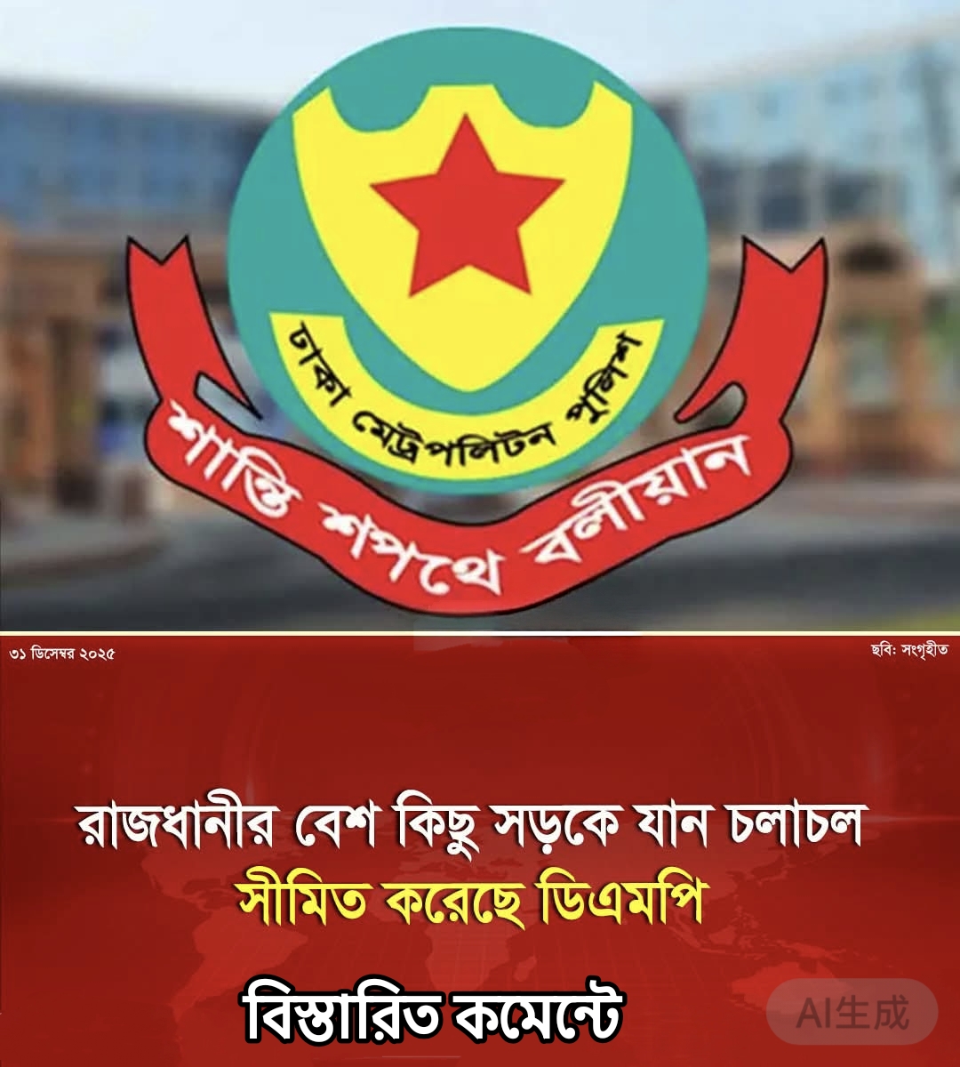 ডিএমপি এ বিষয়ে রাজধানীবাসীসহ সংশ্লিষ্ট সকলের সহযোগিতা কামনা করেছে।
