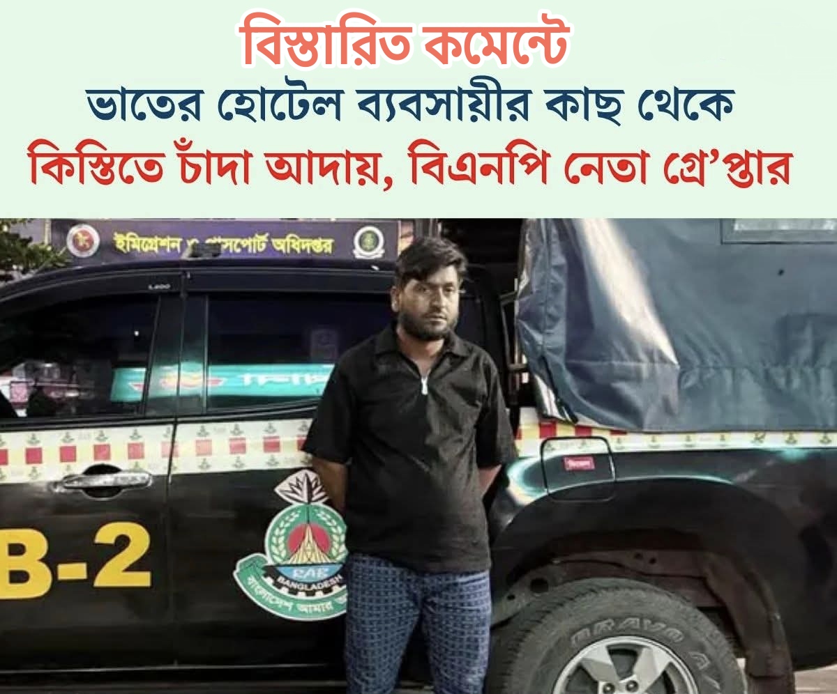 ভাতের হোটেল থেকে কিস্তিতে চাঁদা আদায়, বিএনপি নেতা গ্রেপ্তার