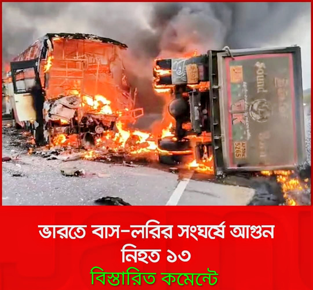 ভারতে বাস-লরির সংঘর্ষে আগুন, নিহত ১৩