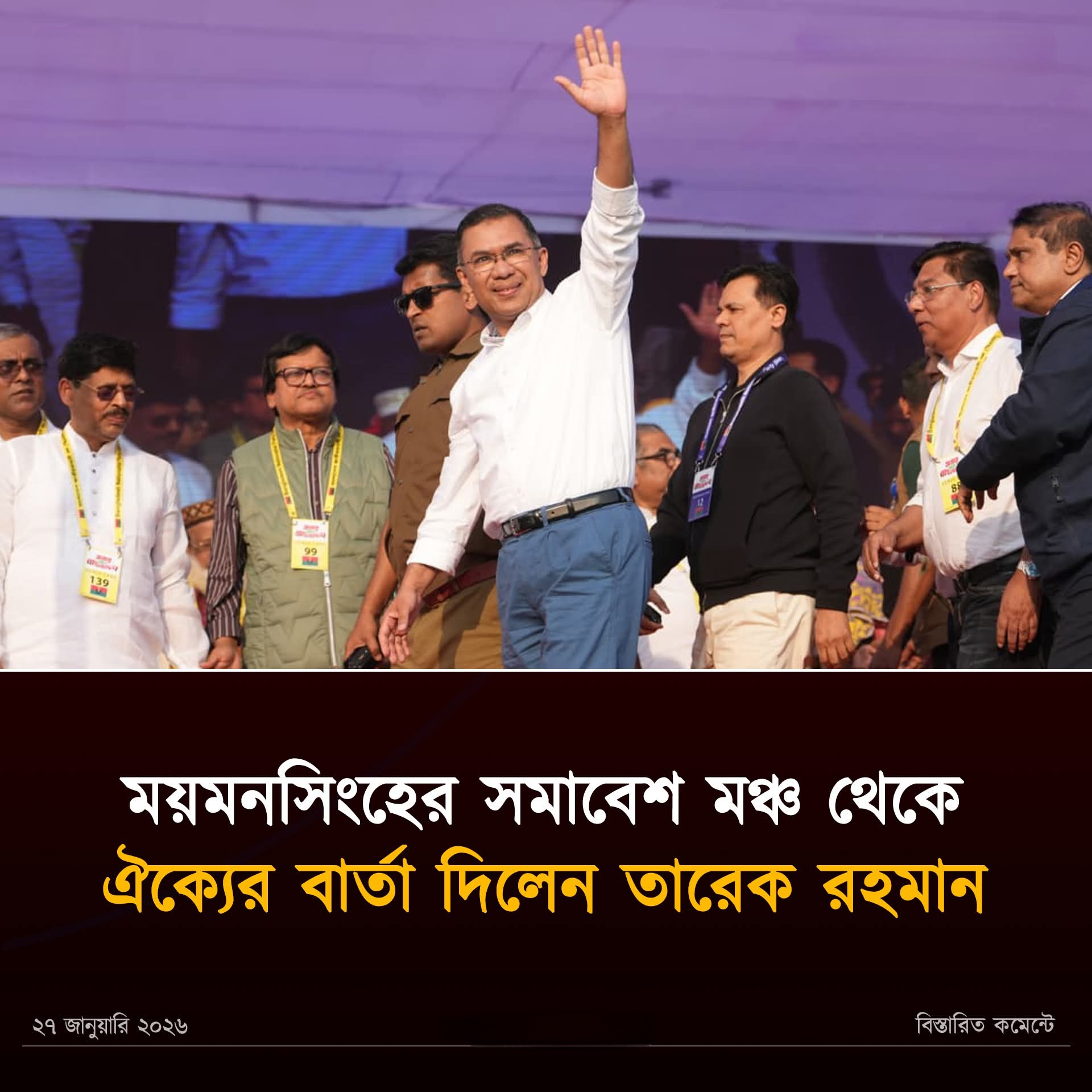 ময়মনসিংহের সমাবেশ মঞ্চ থেকে ঐক্যের বার্তা দিলেন তারেক রহমান