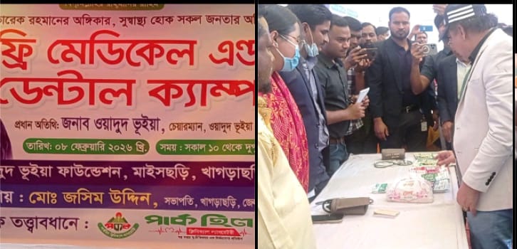 “স্বাস্থ্য কার্ড তারেক রহমানের অঙ্গীকার, সুস্বাস্থ্য হোক সকল জনতার অধিকার” এই প্রতিপাদ্যকে সামনে রেখে খাগড়াছড়ি জেলার মহালছড়ি উপজেলায় ওয়াদুদ ফাউন্ডেশনের উদ্যোগে ফ্রি মেডিকেল ও ডেন্টাল ক্যাম্প অনুষ্ঠিত হয়েছে।