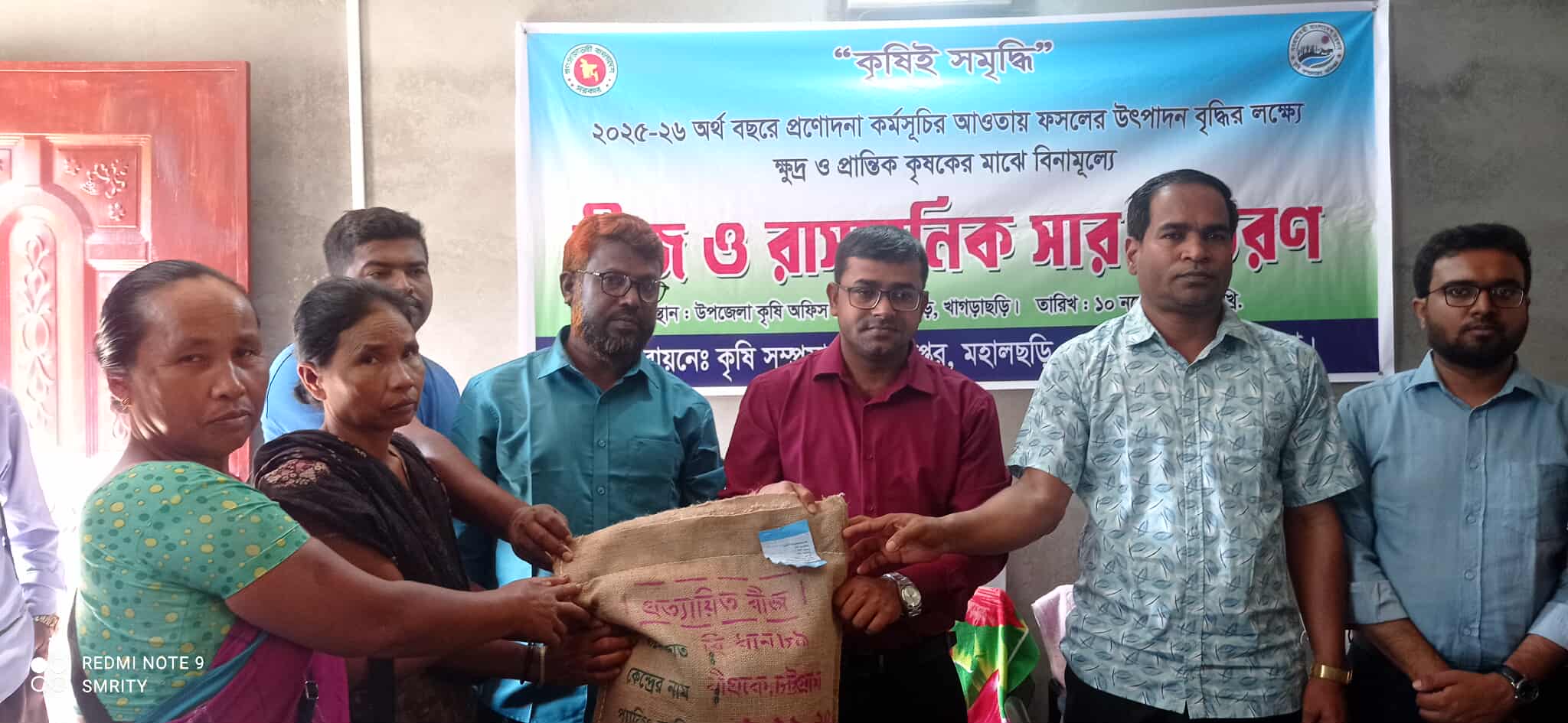 ২০২৫-২৬ অর্থবছরে রবি মৌসুমের প্রণোদনা কর্মসূচির আওতায় খাগড়াছড়ি পার্বত্য জেলার মহালছড়ি উপজেলার ক্ষুদ্র ও প্রান্তিক কৃষকদের মাঝে বিনামূল্যে বীজ ও রাসায়নিক সার বিতরণ অনুষ্ঠানের শুভ উদ্বোধন করা হয়েছে।