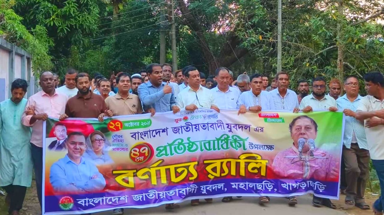 মহালছড়িতে যুবদলের ৪৭তম প্রতিষ্ঠাবার্ষিকীতে বর্ণাঢ্য শোভাযাত্রা
