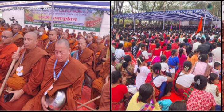 মহালছড়ি কলেজ মাঠে দুই শতাধিক বৌদ্ধ ভিক্ষু শান্তির ধর্মযাত্রা বিরতি
