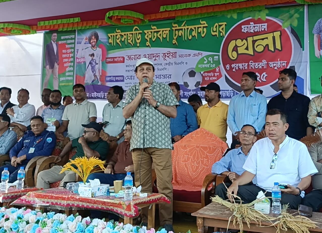 খেলা শেষে রানার্স আপ ও চ্যাম্পিয়ন দলের মাঝে পুরস্কার বিতরণ করা হয়। প্রধান অতিথি বিএনপির মনোনীত প্রার্থী ও খাগড়াছড়ি জেলা বিএনপির সভাপতি ওয়াদুদ ভুঁইয়া বলেন, ২০০১ থেকে ২০০৬ সাল পর্যন্ত বিএনপির মেয়াদকালে খাগড়াছড়ি জেলায় ব্যাপক উন্নয়ন কর্মকাণ্ড বাস্তবায়ন হয়েছে। সেসব চিত্র তুলে ধরে ওয়াদুদ ভুঁইয়া আরও বলেন, তার মেয়াদকালে সড়ক যোগাযোগ, কৃষি, পর্যটন, শিক্ষাসহ গ্রামীণ অর্থনৈতিক উন্নয়নে অগ্রাধিকার দিয়ে কাজ করা হয়েছে। তিনি আগামী জাতীয় সংসদ নির্বাচনে পাহাড়ি-বাঙালি সকল সম্প্রদায়ের লোকজনের নিকট ধানের শীষের পক্ষে ভোট চান। এখানে যে সম্প্রীতি লক্ষ করা গেছে তা যেন অটুট থাকে। আগামীতে নির্বাচিত হলে মাইসছড়িতে একটি স্টেডিয়াম করে দেওয়া হবে।