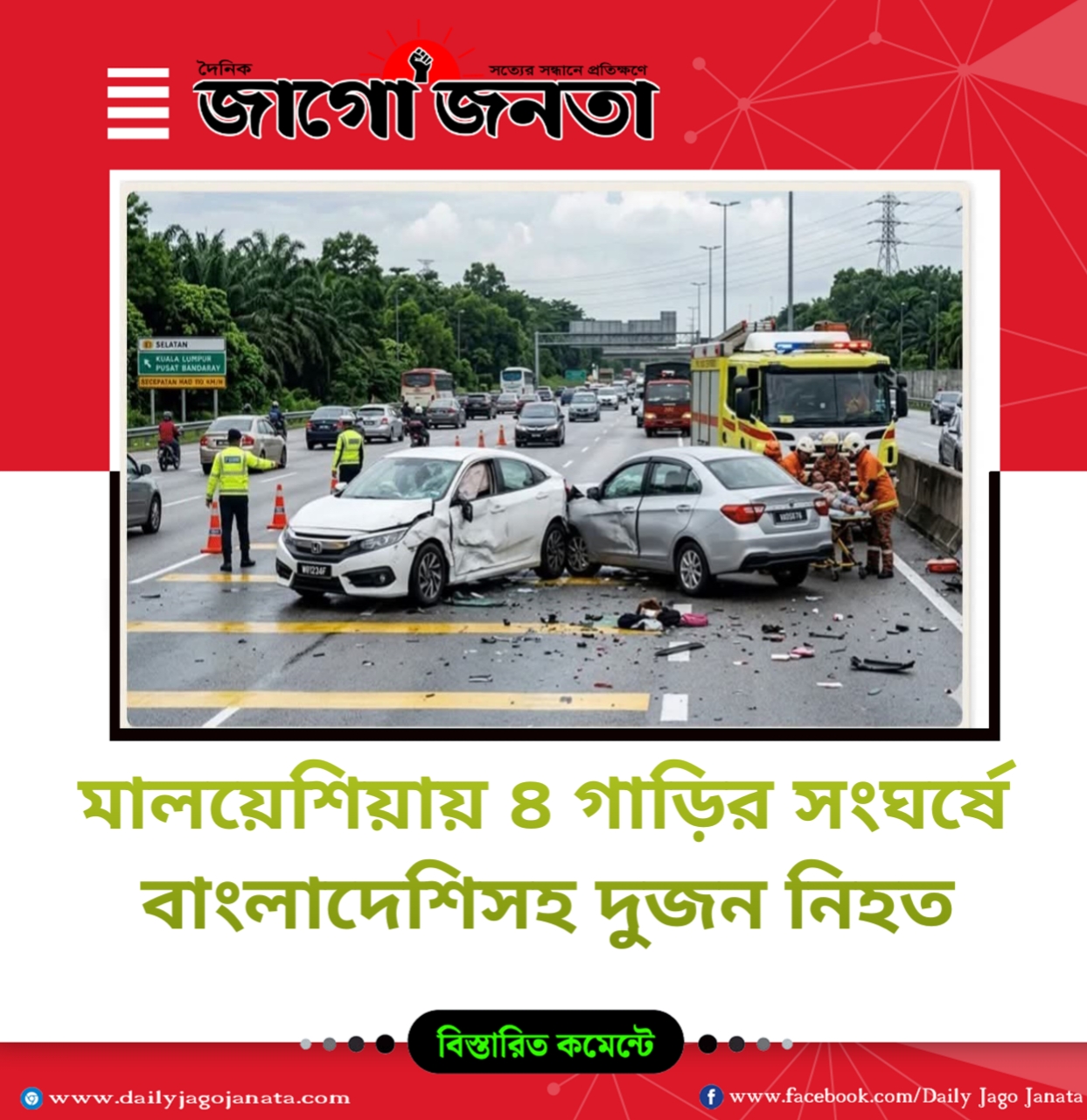 মালয়েশিয়ায় ৪ গাড়ির সংঘর্ষে বাংলাদেশিসহ দুজন নিহত