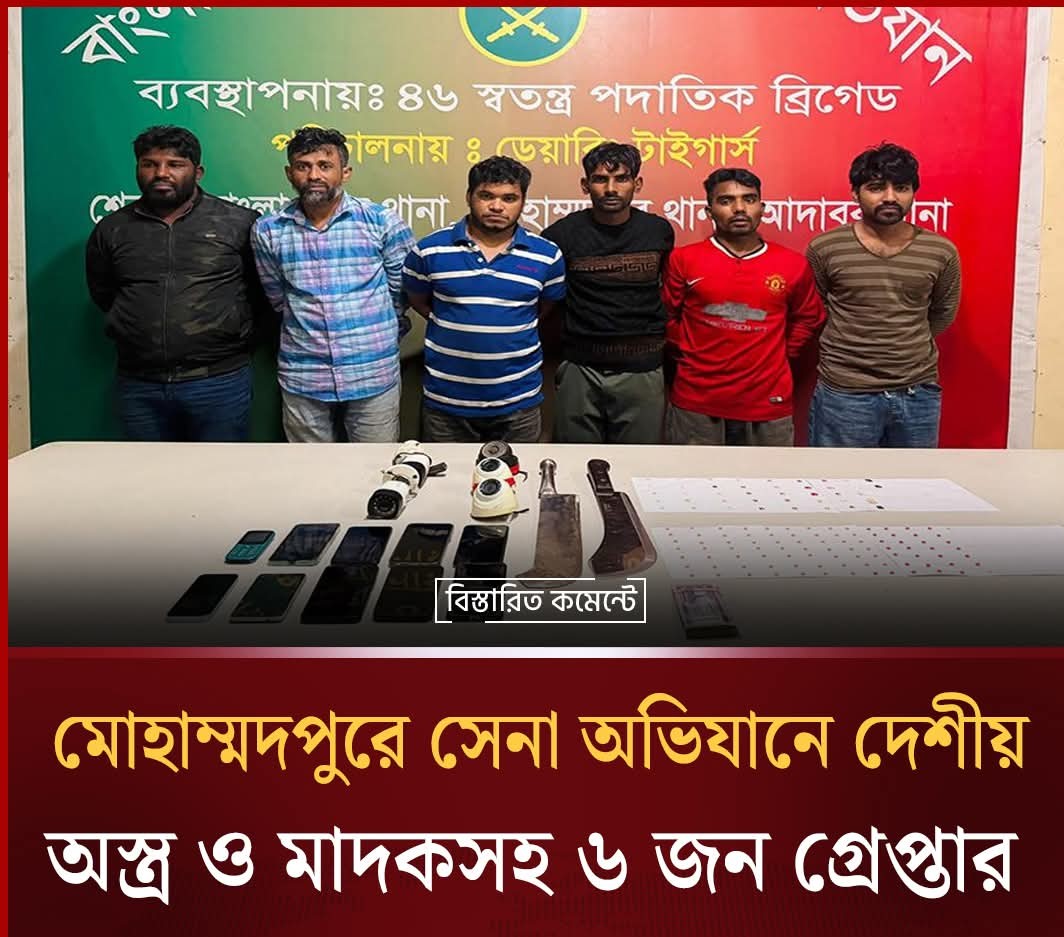 মোহাম্মদপুরে সেনা অভিযানে দেশীয় অস্ত্র-মাদকসহ ছয়জন গ্রেপ্তার