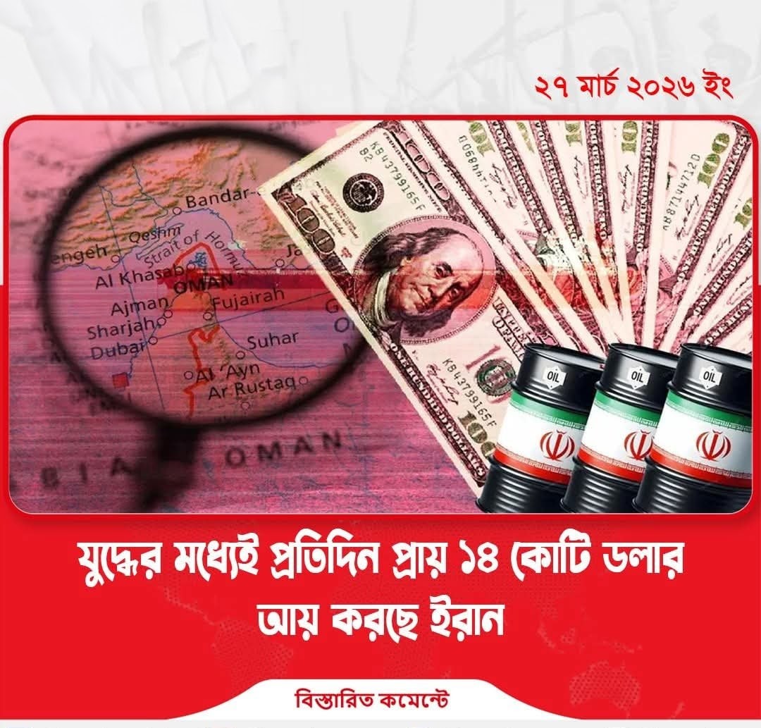 আন্তর্জাতিক ডেস্ক।। গত প্রায় এক মাস ধরে যুক্তরাষ্ট্র ও ইসরায়েলের সঙ্গে তীব্র সংঘাত চলা সত্ত্বেও থেমে নেই ইরানের বৈদেশিক মুদ্রার উপার্জন। এই যুদ্ধের মধ্যেই প্রতিদিন গড়ে ১৩ কোটি ৯০ লাখ ডলার আয় করছে পশ্চিম এশিয়ার এই দেশটি এবং এই অর্থের পুরোটাই আসছে তেল থেকে।