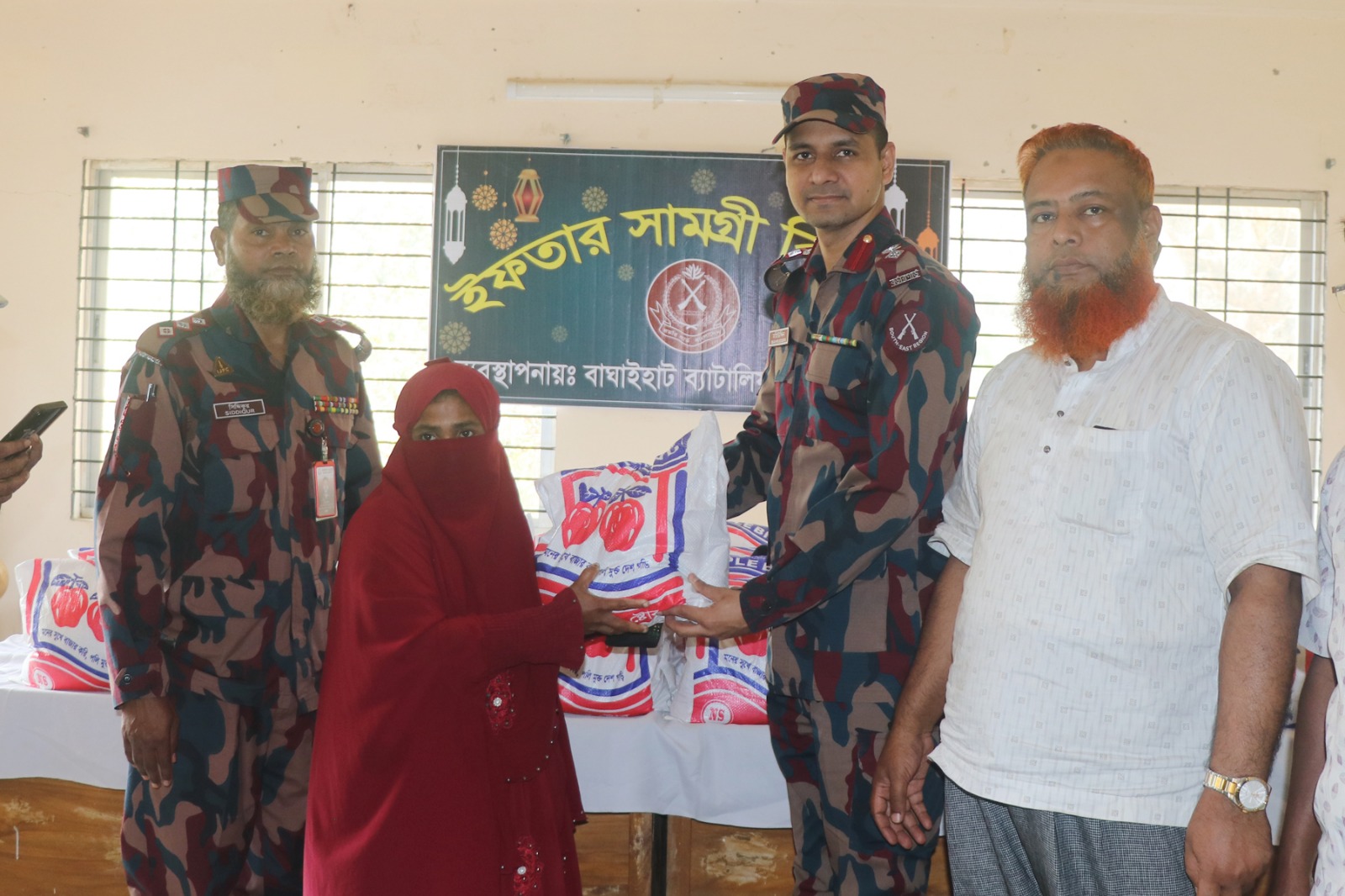 বৃহস্পতিবার ৫ মার্চ সকালে সাজেক ইউনিয়ন পরিষদ কার্যালয়ে এসব ইফতার সামগ্রী বিতরণ করেন ৫৪ বিজিবি বাঘাইহাট ব্যাটালিয়নের অধিনায়ক লেঃ কর্নেল মোঃ মহিউদ্দিন ফারুকী।