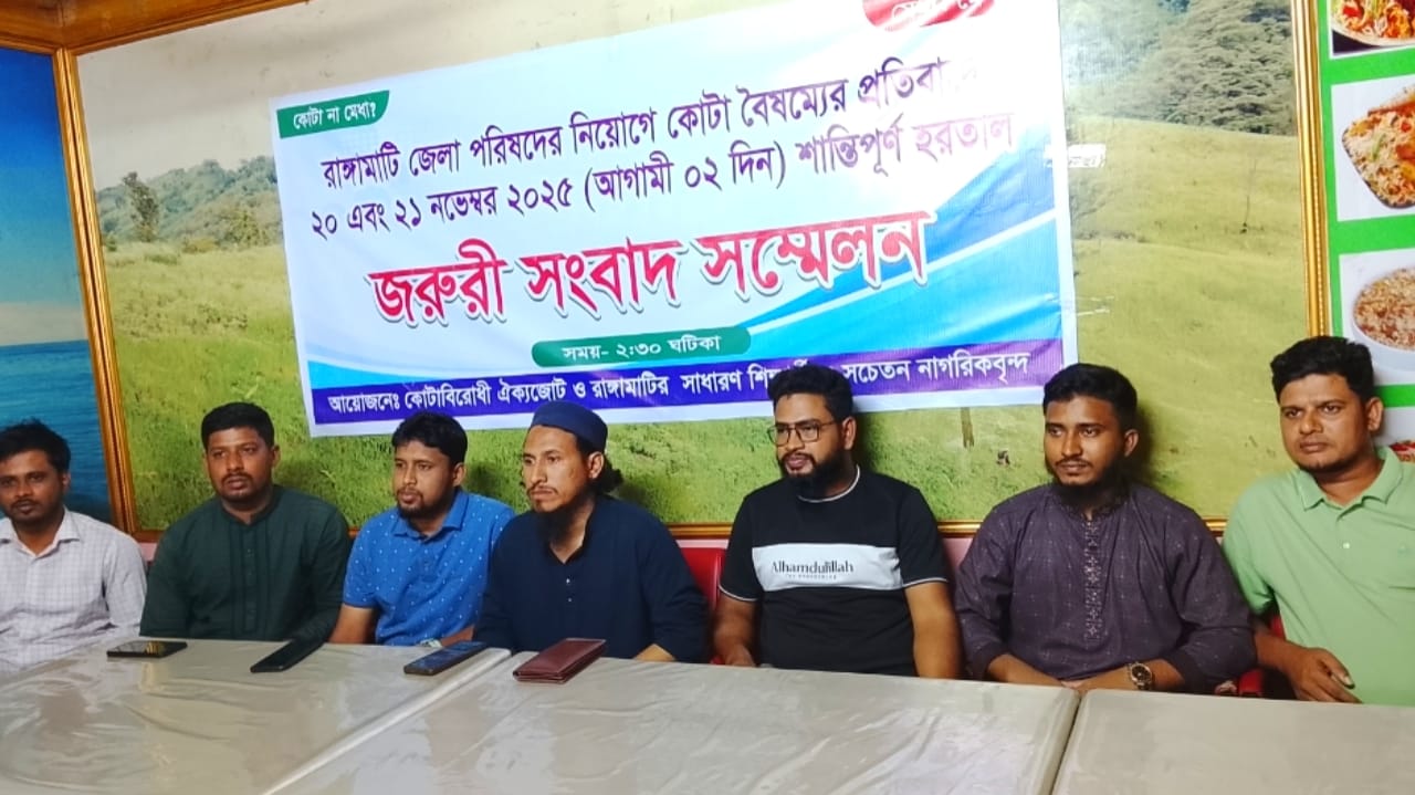 রাঙামাটিতে জেলা পরিষদের শিক্ষক নিয়োগে কোটা বৈষম্যের প্রতিবাদে দু’দিনের হরতালের ডাক