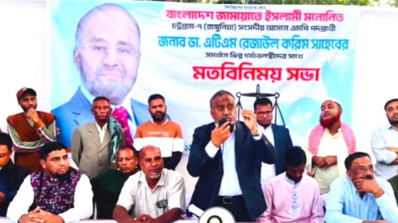 রাঙ্গুনিয়ায় ভিন্ন ধর্মাবলম্বীদের সাথে মতবিনিময় করলেন দাঁড়িপাল্লার প্রার্থী ডা. রেজাউল করিম