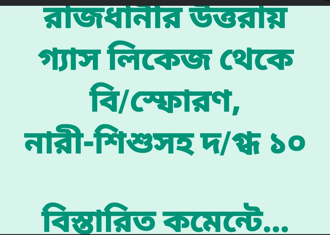 রাজধানীর উত্তরায় পাইপ লাইনের গ্যাস বিস্ফোরণে নারী-শিশুসহ দগ্ধ ১০