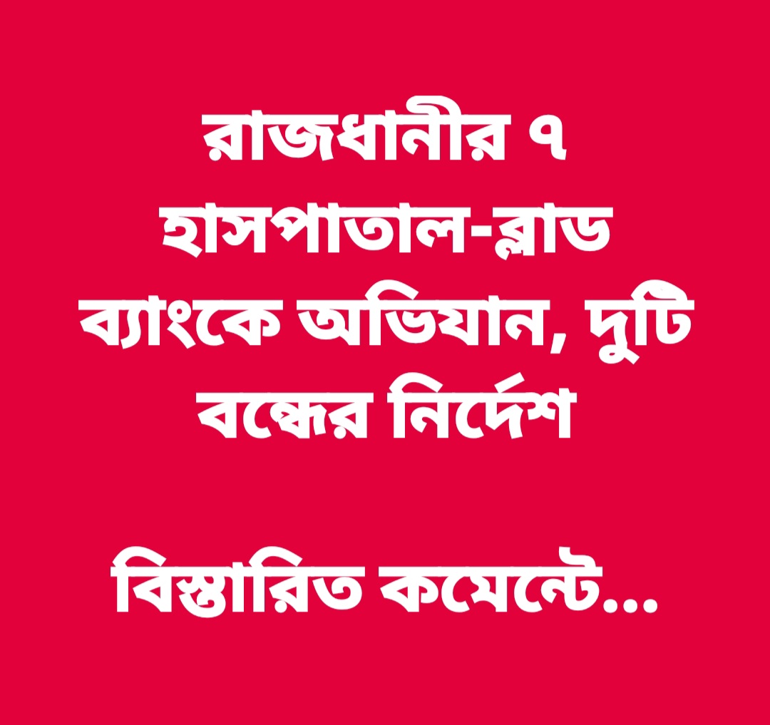 রাজধানীর ৭ হাসপাতাল-ব্লাড ব্যাংকে অভিযান, দুটি বন্ধের নির্দেশ