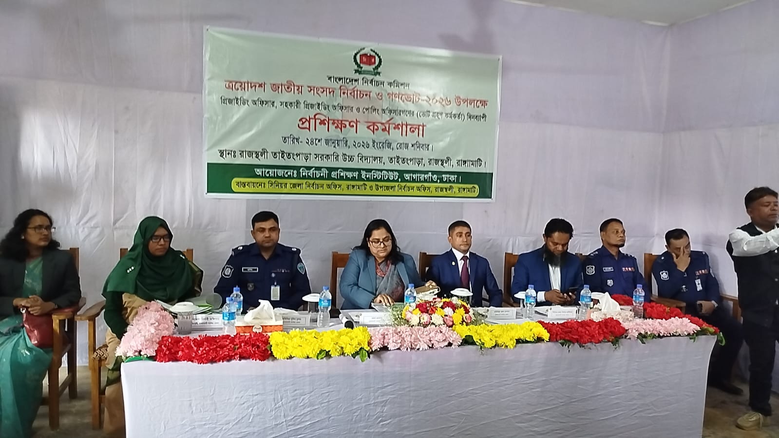 শনিবার (২৪ জানুয়ারি) রাজস্থলী উপজেলার তাইতংপাড়া সরকারি উচ্চ বিদ্যালয়ে এ প্রশিক্ষণ কর্মশালার আয়োজন করা হয়। সকাল থেকে শুরু হওয়া এই কর্মশালায় ভোটগ্রহণ প্রক্রিয়া, কেন্দ্র ব্যবস্থাপনা, আইনগত দায়িত্ব ও জরুরি পরিস্থিতি মোকাবিলার বিষয়ে বিস্তারিত প্রশিক্ষণ প্রদান করা হয়।
