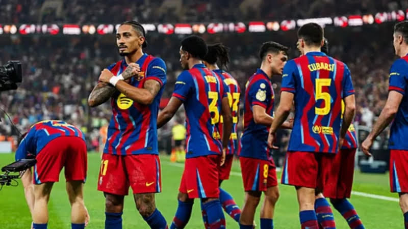 রোববার রাতে জেদ্দার কিং আব্দুল্লাহ স্পোর্টস সিটি স্টেডিয়ামে ম্যাচটি শুরু থেকেই ছিল উত্তেজনাপূর্ণ। পাঁচ গোলের চারটিই আসে প্রথমার্ধে, যার তিনটি ছিল ইনজুরি টাইমে। শুরুতে দুই দলই সমানতালে আক্রমণ চালালেও আধঘণ্টা পার হওয়ার পর ম্যাচের নিয়ন্ত্রণ নেয় বার্সেলোনা।
