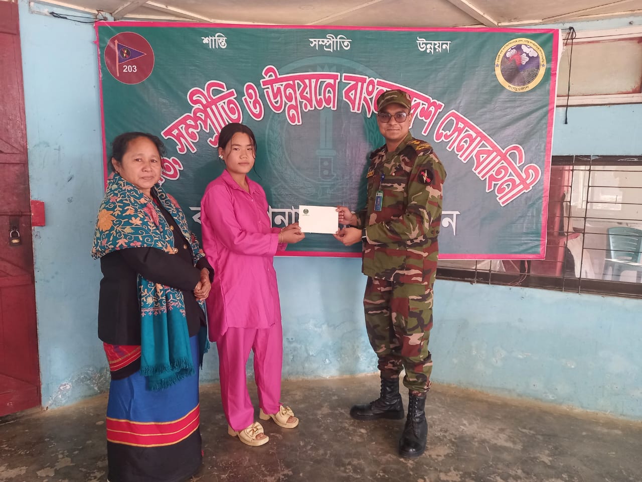 বৃহস্পতিবার ( ২২ জানুয়ারি) সকাল ১১টায় লংগদু জোন কর্তৃক সম্প্রীতি ও উন্নয়ন প্রকল্পের আওতায় লংগদু জোন কমান্ডার লেঃ কর্নেল মীর মোর্শেদ, এসপিপি, পিএসসি সার্বিক নির্দেশনায় লেঃ তাওসীফ অসহায় দরিদ্র ও গরিব পরিবারের ২ জন মেধাবী পাহাড়ি ছাত্রীর এসএসসি পরীক্ষার ফরম ফিলাপের জন্য অনুদান প্রদান করেন।