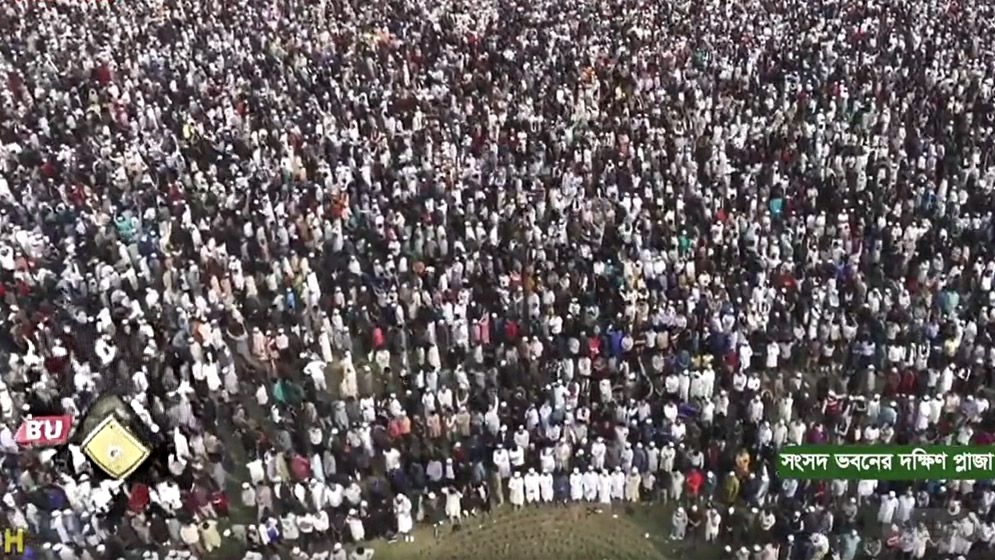 ওসমান হাদির নামাজে জানাজায় অংশ নিতে জাতীয় সংসদের দক্ষিণ প্লাজা ও মানিক মিয়া এভিনিউ এলাকায় লাখো মানুষের ঢল নামে। খামারবাড়ি থেকে আসাদ গেট পর্যন্ত পুরো এলাকা এখন জনসমুদ্রে পরিণত হয়েছে।