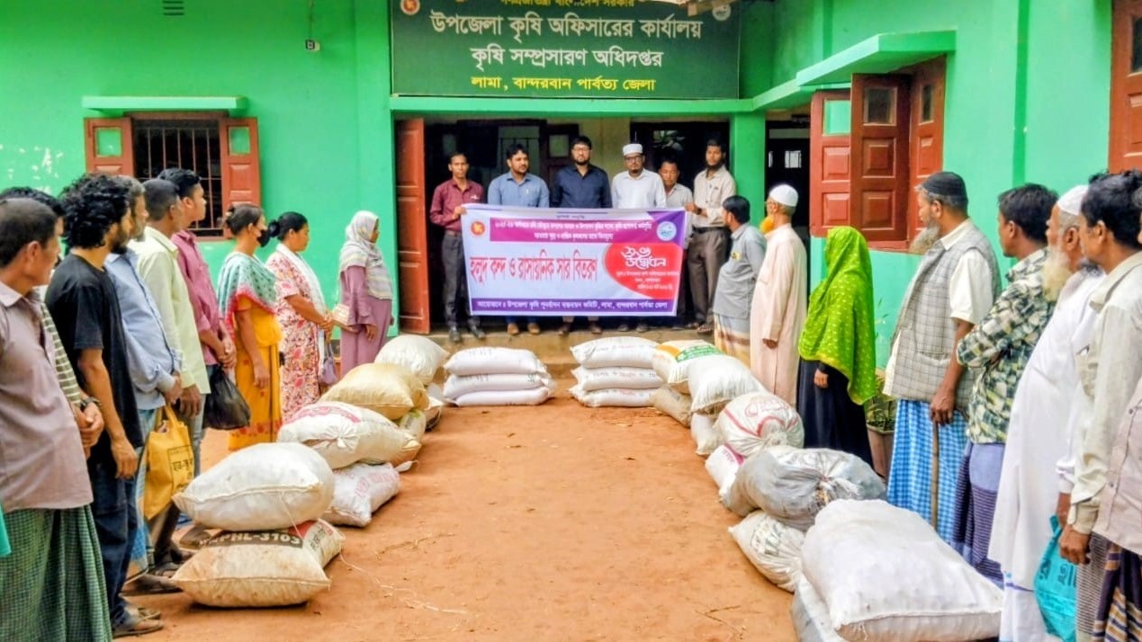 লামায় ৩০ কৃষকের মাঝে হলুদ কন্দ বীজ ও সার বিতরণ