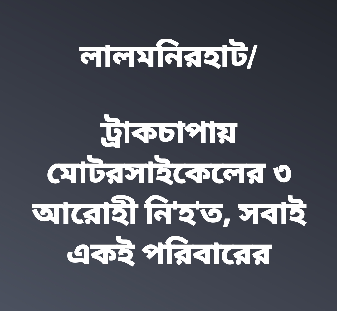 লালমনিরহাটে ট্রাকচাপায় মোটরসাইকেলে থাকা একই পরিবারের তিনজন নিহত