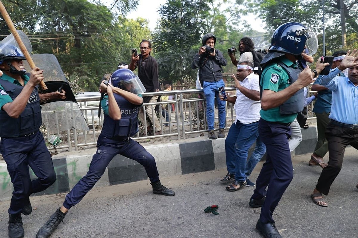 এর আগে বিকেলে শাহবাগে শিক্ষকদের ‘কলম বিসর্জন’ কর্মসূচিতে পুলিশ সাউন্ড গ্রেনেড, টিয়ারশেল ও রাবার বুলেট নিক্ষেপ করলে বহু শিক্ষক আহত হন।