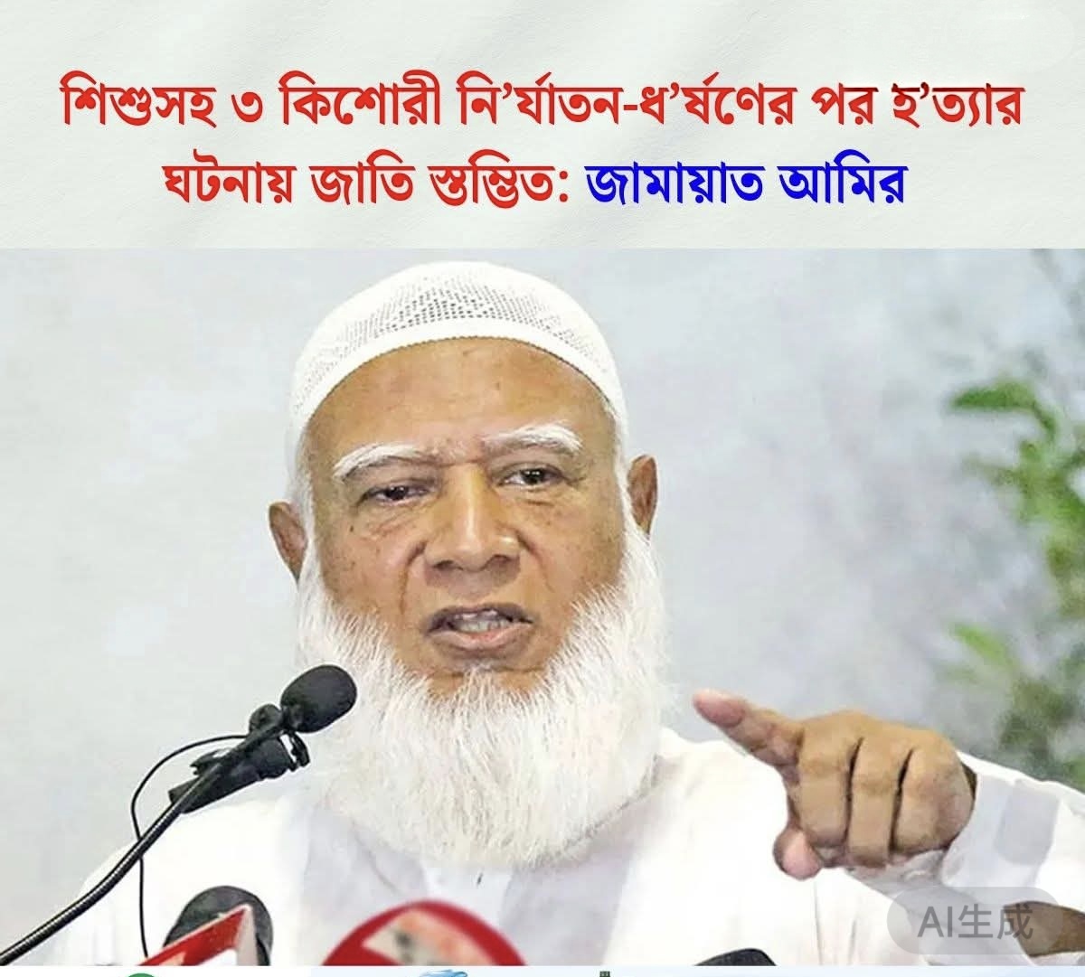 শিশুসহ ৩ কিশোরী নির্যাতন-ধর্ষণের পর হত্যার ঘটনায় জাতি স্তম্ভিত: জামায়াত আমির