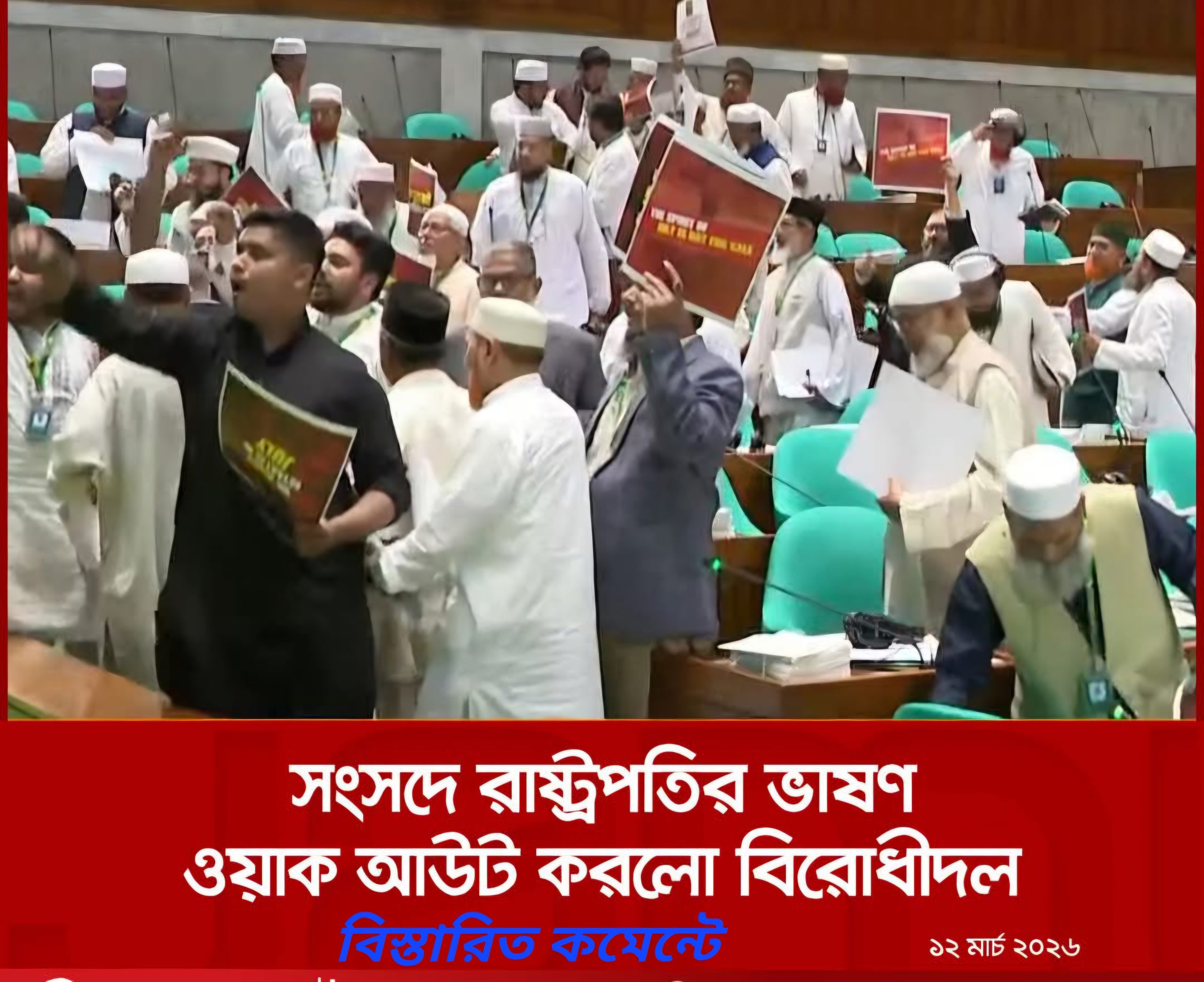 সংসদে রাষ্ট্রপতির ভাষণ: প্ল্যাকার্ড হাতে বিরোধী দলের ওয়াক আউট