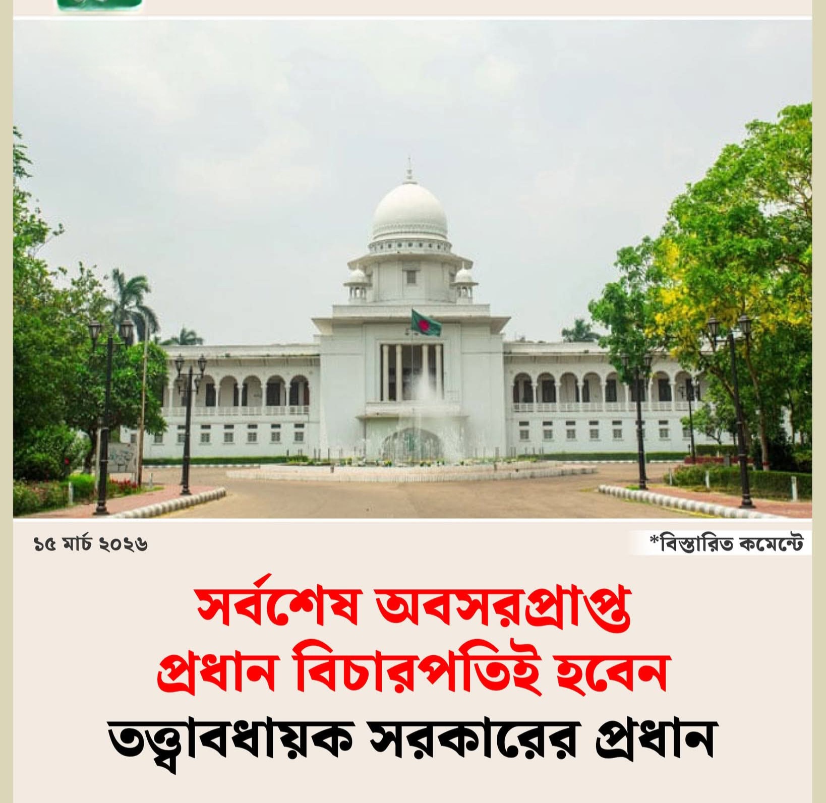 সর্বশেষ অবসরপ্রাপ্ত প্রধান বিচারপতিই হবেন তত্ত্বাবধায়ক সরকারের প্রধান