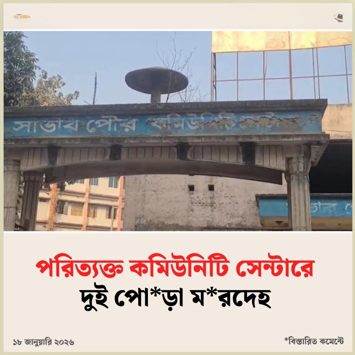 সাভার উপজেলা প্রতিনিধি। ।সাভারের একটি পরিত্যক্ত পৌর কমিউনিটি সেন্টার থেকে দুই ব্যক্তির পোড়া মরদেহ উদ্ধার করেছে পুলিশ।