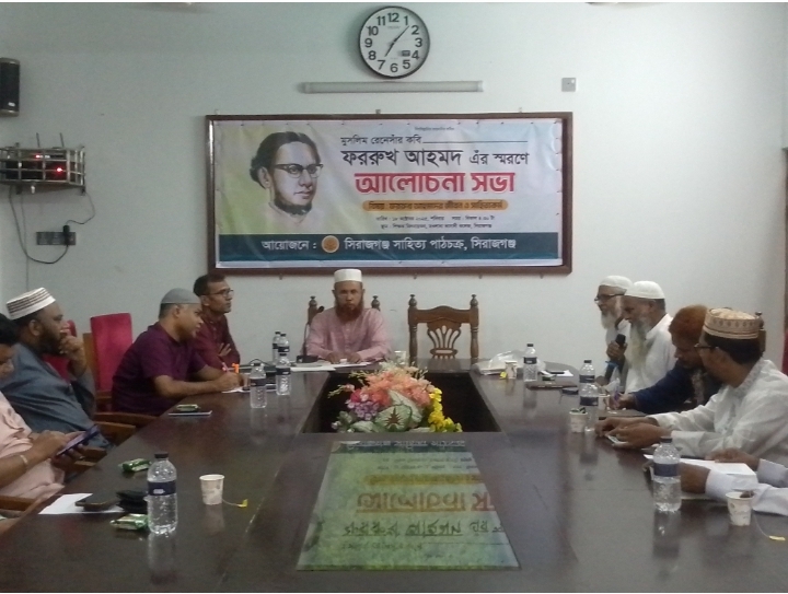 সিরাজগঞ্জ প্রতিনিধি।। সিরাজগঞ্জ সাহিত্য পাঠ চক্রের উদ্যোগে মুসলিম রেনেসাঁর কবি ফররুখ আহমদের স্মরণে আলোচনা সভা অনুষ্ঠিত হয়েছে।