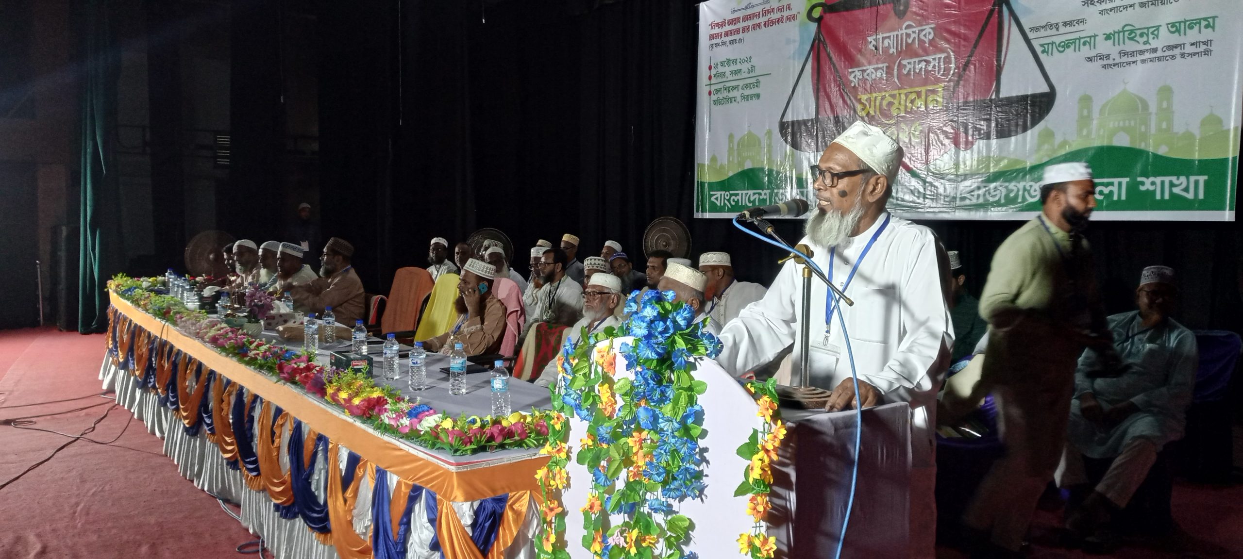 সিরাজগঞ্জ জেলা জামায়াতের আমীর অধ্যক্ষ মাওলানা শাহীনুর আলমের সভাপতিত্বে প্রধান অতিথি হিসেবে উপস্থিত ছিলেন বাংলাদেশ জামায়াতে ইসলামী কেন্দ্রীয় সহঃ সেক্রেটারি জেনারেল মাওলানা মোঃ রফিকুল ইসলাম খান।