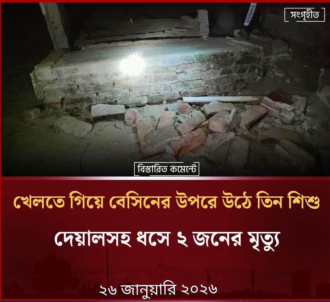 সিরাজগঞ্জে বেসিনের উপর খেলাধুলা করার সময় বেসিনসহ দেয়াল ধসে দুই শিশুর মৃত্যু