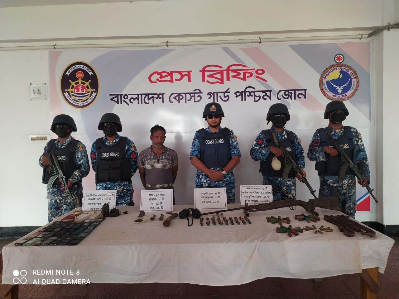 ওই ব্যক্তির দেওয়া তথ্য মোতাবেক ১১ নভেম্বর মঙ্গলবার ভোর ৪ টায় কোস্টগার্ড স্টেশন কয়রা কর্তৃক উক্ত এলাকায় একটি বিশেষ অভিযান পরিচালনা করা হয়। অভিযানে কোস্টগার্ড ১ টি একনলা বন্দুক, ১০ রাউন্ড তাজা গোলা, ২৬ রাউন্ড ফাঁকা কার্তুজ, ৪৪ টি চকলেট বোমা, ৩০ টি মোবাইল, ১ টি বাইনোকুলার, ১ টি ওয়াকি টকি, ৪ টি দেশীয় অস্ত্র ও ২০ গ্রাম গাঁজাসহ ডাকাতির কাজে ব্যবহৃত অন্যান্য উপকরণসমূহ জব্দ করা হয়।
