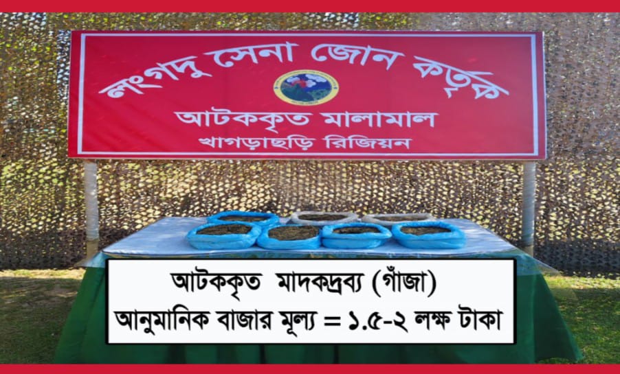 রাঙামাটির লংগদু (তেজস্বী) সেনা জোনের সফল অভিযানে লংগদু উপজেলার ঝর্ণাটিলা এলাকা থেকে বিপুল পরিমাণ অবৈধ ভারতীয় গাঁজা জব্দ করা হয়েছে।