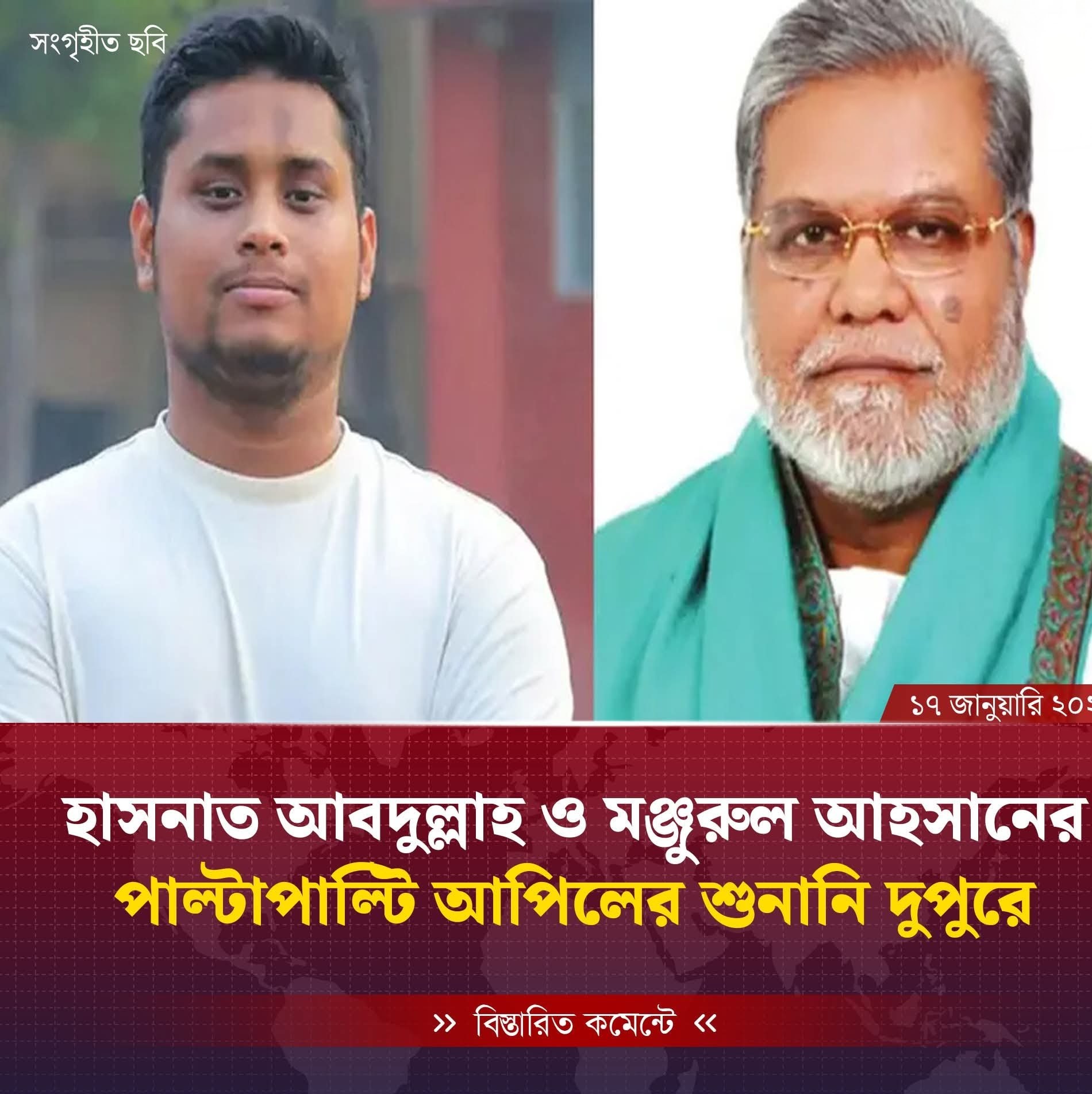 হাসনাত আবদুল্লাহ ও মঞ্জুরুল আহসানের পাল্টাপাল্টি আপিলের শুনানি দুপুরে